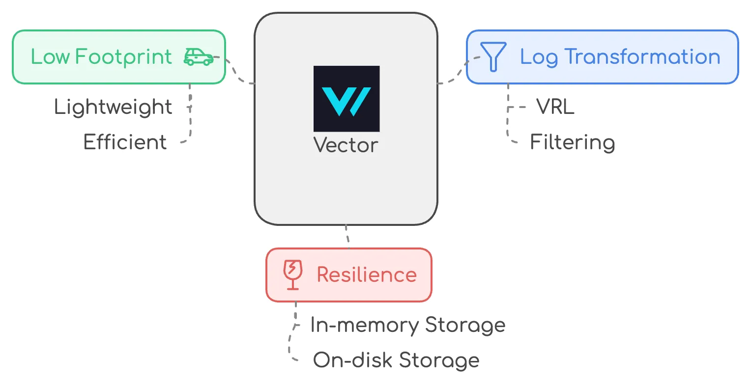 - Resilience: Vector offered in-memory and on-disk log storage when sinks werenât available, ensuring no logs were ever lost, even in the event of a failure.